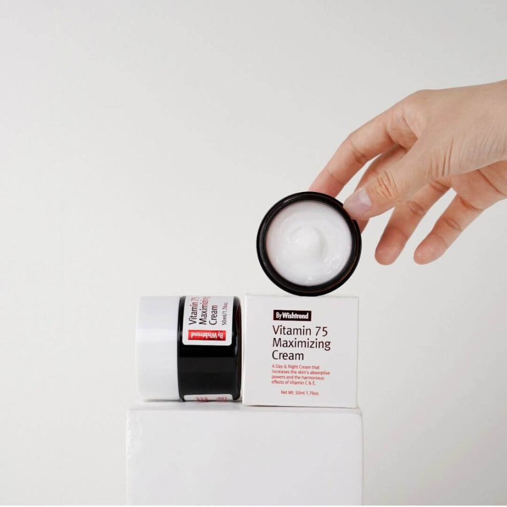 Крем By Wishtrend Vitamin 75 Maximizing Cream способствует осветлению пигментации, выравнивает тон, устраняет тусклость и придаёт естественное сияние.