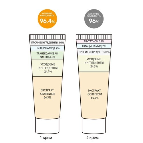 Отбеливающий крем на основе экстракта облепихи и 6% транексамовой кислоты, глубоко увлажняет, устраняет тусклость и следы усталости, осветляет нежелательную пигментацию. Замедляет процессы старения, уменьшает глубину мимических морщин и делает кожу более подтянутой. Запускает синтез коллагена и эластина, делает кожу более упругой и плотной. Крем обладает нежной текстурой, быстро впитывается и не оставляет липкой пленки. Применение: Нанесите небольшое количество на кожу в качестве завершающего этапа ухода. Дать впитаться.