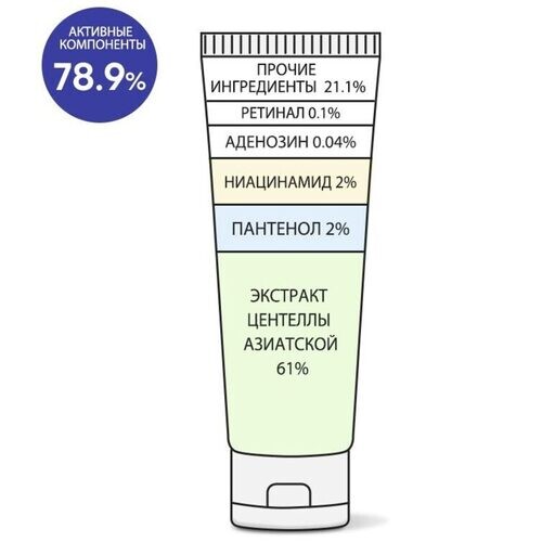- 61.3% экстракт центеллы азиатской снимает покраснение и раздражение, укрепляет стенки сосудов, уменьшает проявление купероза, повышает эластичность.