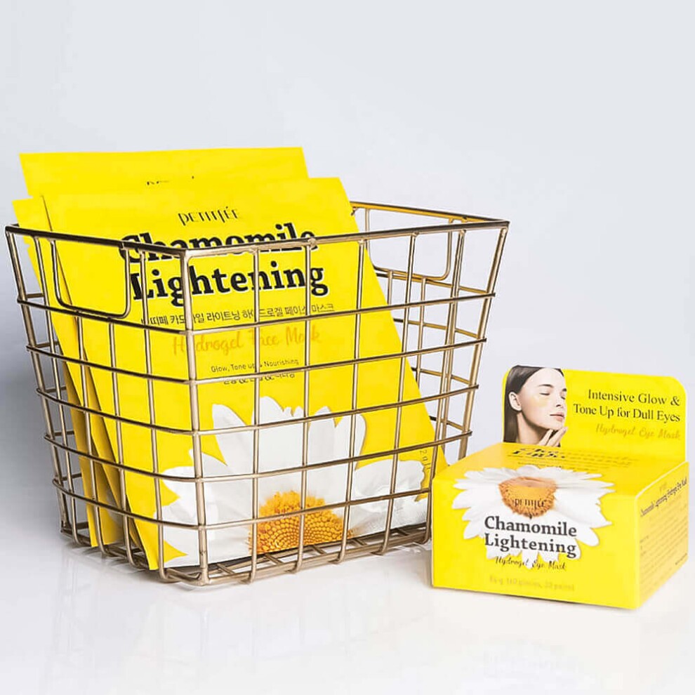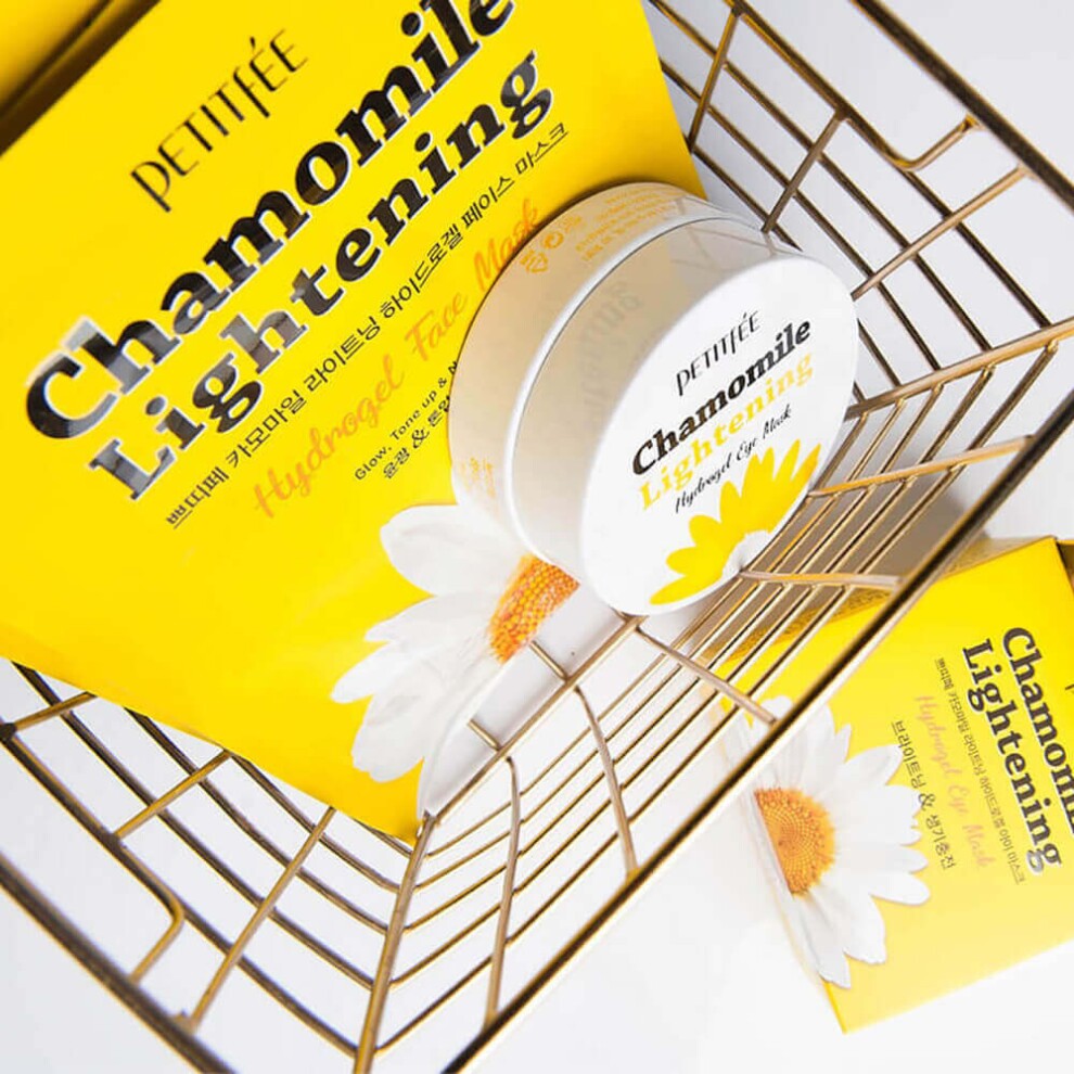 Успокаивающая гидрогелевая маска с экстрактом ромашки Petitfee Chamomile Lightening Hydrogel Face Mask снимает красноту и зуд, увлажняет, мягко осветляет и освежает при нанесении.