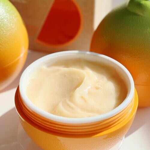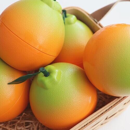 Необычная баночка в виде апельсина в картонной упаковке.